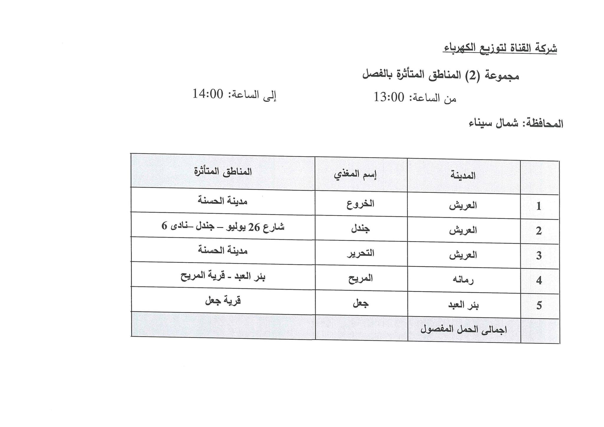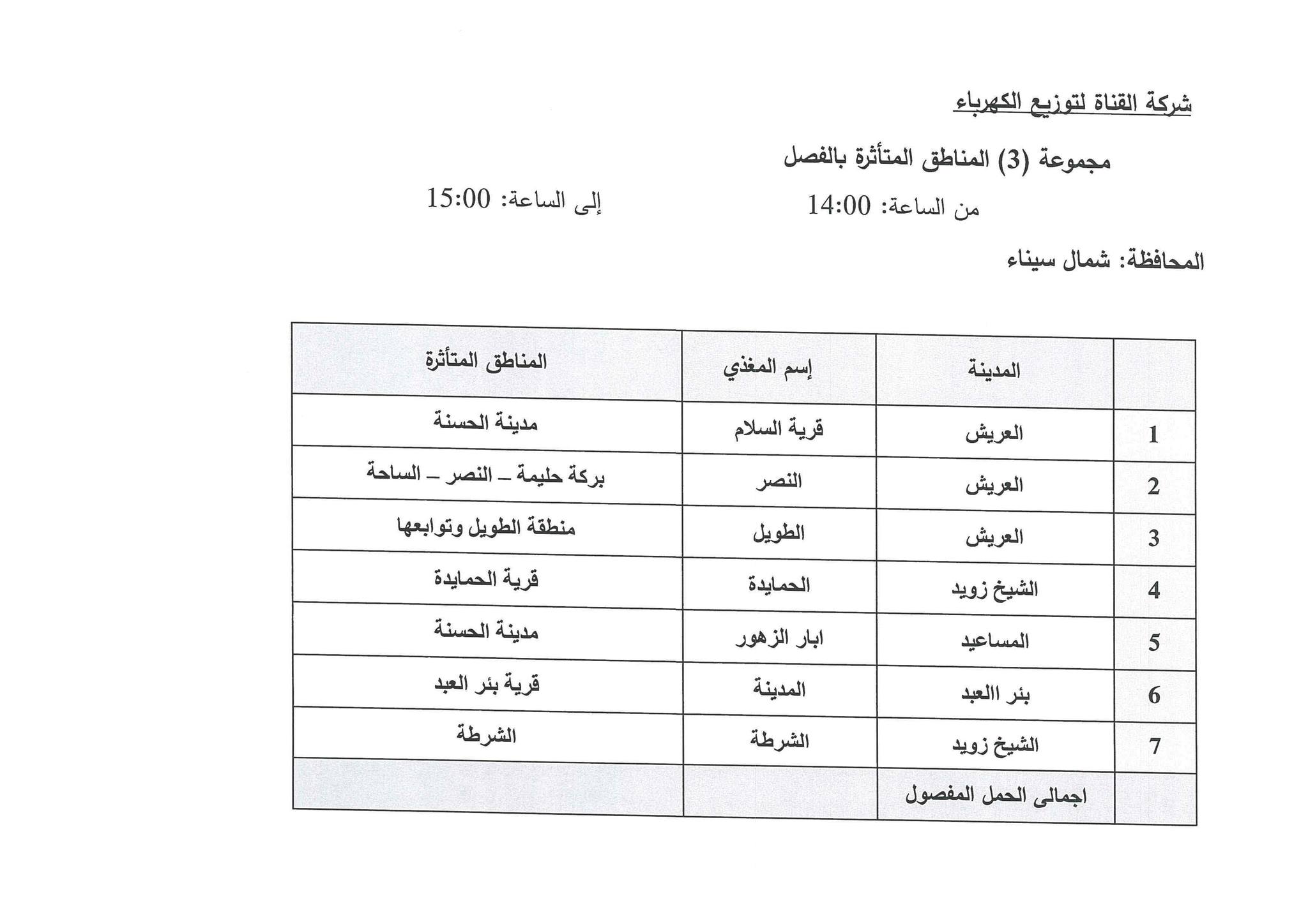 اماكن مواعيد قطع الكهرباء في شمال سيناء