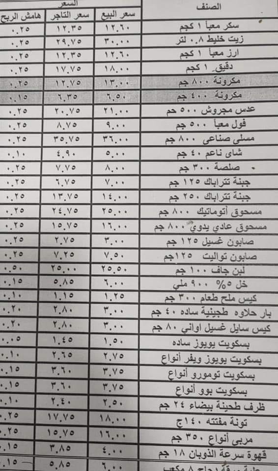 ويستعرض موقع الأول ما أعلنه رمضان الشحات، مدير المكتب الإعلامي لوزارة التموين، عن الأسعار الجديدة للسلع التموينية وهي كالتالي: