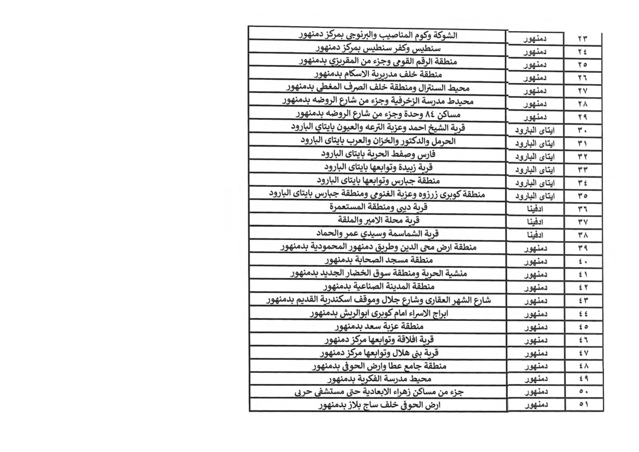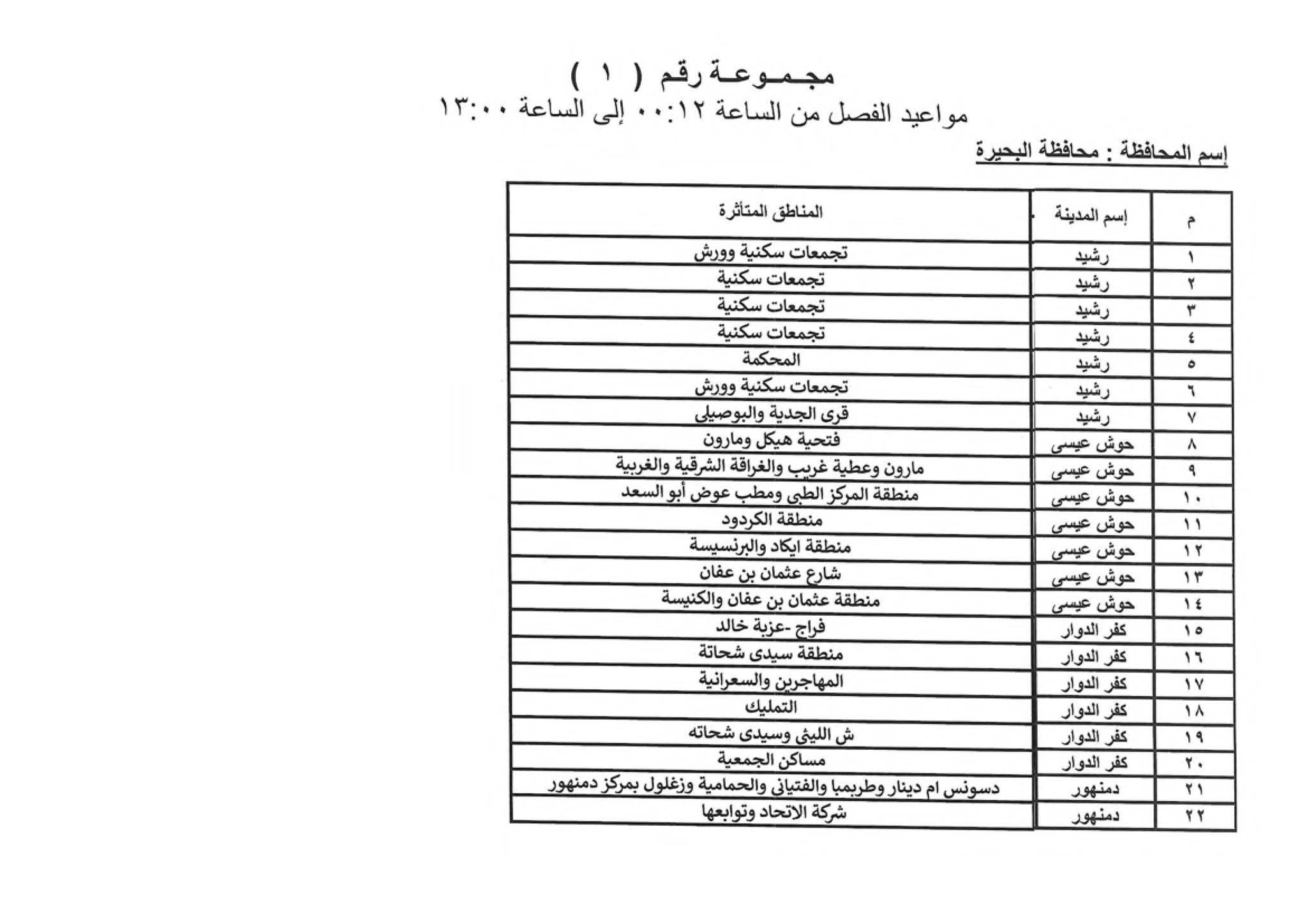 اماكن مواعيد قطع الكهرباء في البحيرة