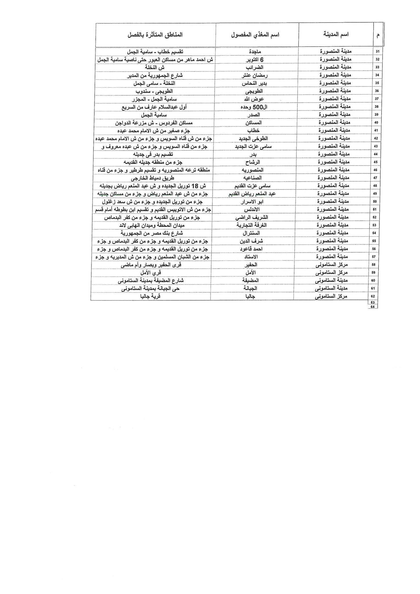 اماكن مواعيد قطع الكهرباء في الدقهلية