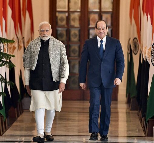 وأشاد السيسي، بالتطورات الإيجابية التي شهدتها العلاقات الاقتصادية والتجارية بين البلدين خلال الفترة الماضية، موضحاً سيادته في هذا الصدد ما توفره المشروعات العملاقة الجاري تنفيذها فى مصر من فرص استثمارية متنوعة، وفى مقدمتها محور تنمية منطقة قناة السويس، والذى يتضمن عدداً من المناطق الصناعية واللوجستية الكبرى، وهو ما يوفر فرصاً واعدة للشركات الهندية الراغبة في الاستفادة من موقع مصر الاستراتيجي، كمركز للإنتاج وإعادة تصدير المنتجات إلى مختلف دول العالم، التي تربطنا بالعديد منها اتفاقيات للتجارة الحرة، لاسيما في المنطقتين العربية والأفريقية.