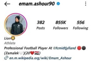 أضاف اللاعب إمام عاشور، المحترف بصفوف ميتلاند الدنماركي، كلمة zamalek – فريق الزمالك إلى التعريف الخاص به على صفحة التواصل الإجتماعي إنستجرام، لأول مرة بعد رحيله عن صفوف الفريق الأبيض خلال فترة الانتقالات الشتوية في يناير الماضي.