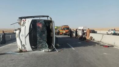 الأتوبيس اتقلب .. 39 سودانيًا مصاباً وسائق مصري حصيلة حادث بنى سويف ( صور)